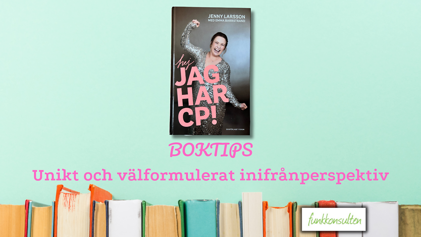 Jenny Larsson är mamma, arbetsterapeut, influencer och funkivist. I boken Hej, jag har CP, får vi läsare ta del av Jennys liv. Ett liv som utifrån sett kan se se ganska vanligt ut. Jenny växte upp med villa och Volvo och är nu själv villa och Volvo-förälder. Men Jenny är inte vanlig ur alla livets synvinklar. Hon är en extraordinärt hårt kämpande person.